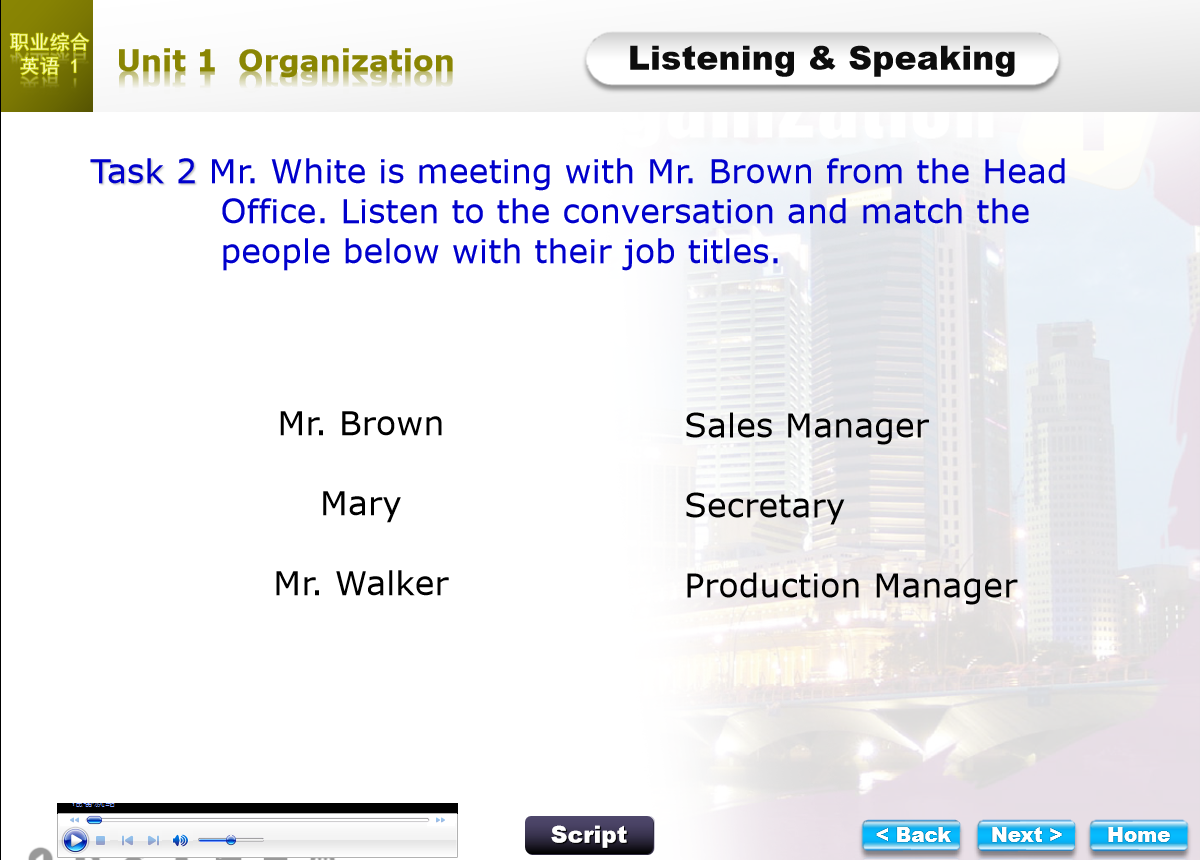M1: Mary, will you please show Mr. Brown to the Sales Department? He’ll have a talk with Mr. Walker.