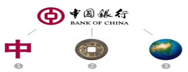 以中国古钱与“中”字为基本形状,古钱图形是圆形与方孔的设计,中间方孔,上下加垂直线,成为“中”字形状。古钱形状代表银行,“中”字代表中国,寓意天方地圆,经济为本,颇具中国风格。