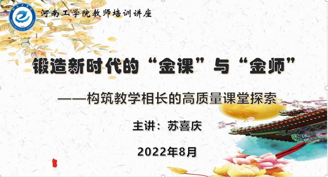 讲座《锻造新时代的金课与金师》,河南工学院主办