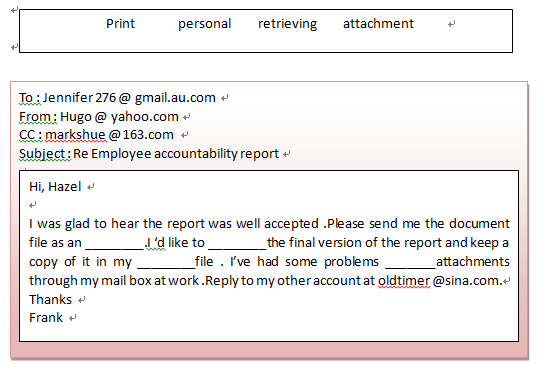 电子邮件不仅仅是一种沟通方式,它还是一个沟通的载体。写电子邮件有多种方式,但用什么形式写要看每个公司的具体要求以及看你是给顾客写商务信函、给下属写备忘录还是给你同事写便条等等。通常给熟悉的同事写信函往往用一些非正式的信函形式,请看下面的例子。