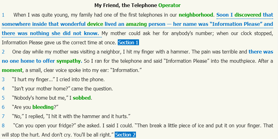 Text A——My Friend, the Telephone Operator(我的朋友电话接线员)