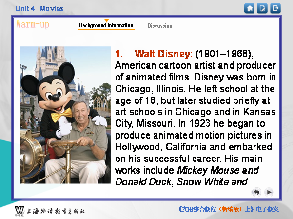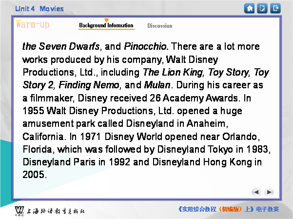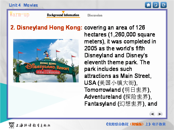 2 One of Disney’s favorite dreams was to create a new kind of amusement park — a place where parents and children could all go and have fun together. In 1955 his first amusement park, Disneyland, opened in California. In late 1971, a bigger amusement park, Disney World, was completed in Orlando, Florida. Walt Disney himself did not live long enough to visit his Florida park. He died in December 1966. However, his death did not bring his dreams to an end. His empire is still growing. It has expanded to Japan in Asia and France in Europe. In 2005, China had its first Disneyland built in Hong Kong. Now it has become much easier for us Chinese to meet those lovely cartoon characters in real life.