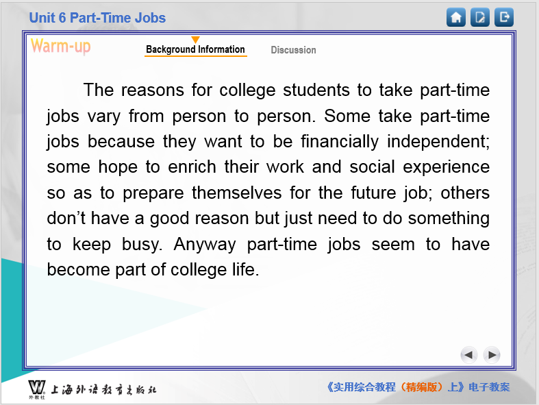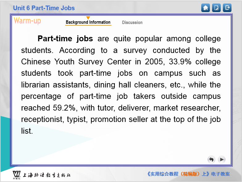 3. Have you ever done any part-time jobs? Share youe experience with your partner.