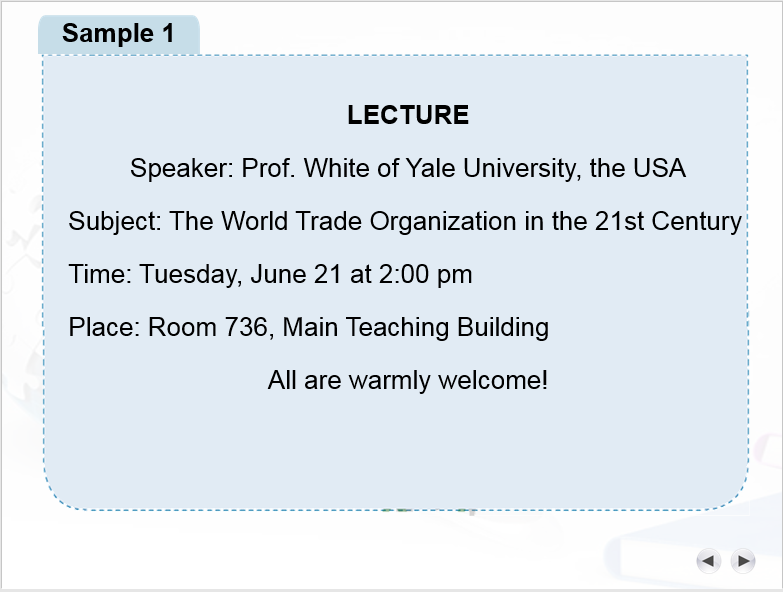 1. shall / will + 动词原形:表示将来发生的动作或状态。如: