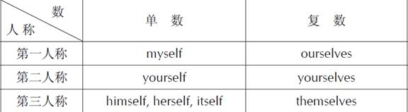 三、反身代词 表示“我自己”、“你自己”、“他自己”、“我们自己”、“你们自己”、“他们自己”的代词称为反身代词,其形式如下: