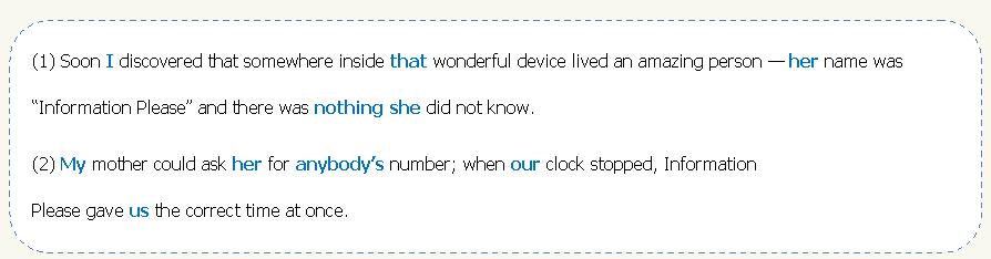 代词是代替名词或句子的一种词类。大多数代词具有名词和形容词的功能。代词分为八类:人称代词、物主代词、反身代词、指示代词、疑问代词、不定代词、连接代词和关系代词。比如课文例句(1)中的I、she是人称代词,her是物主代词,that是指示代词,nothing是不定代词。例句(2)中的my、our是物主代词,her、us是人称代词,anybody是不定代词。限于篇幅,这里主要介绍前六种代词。