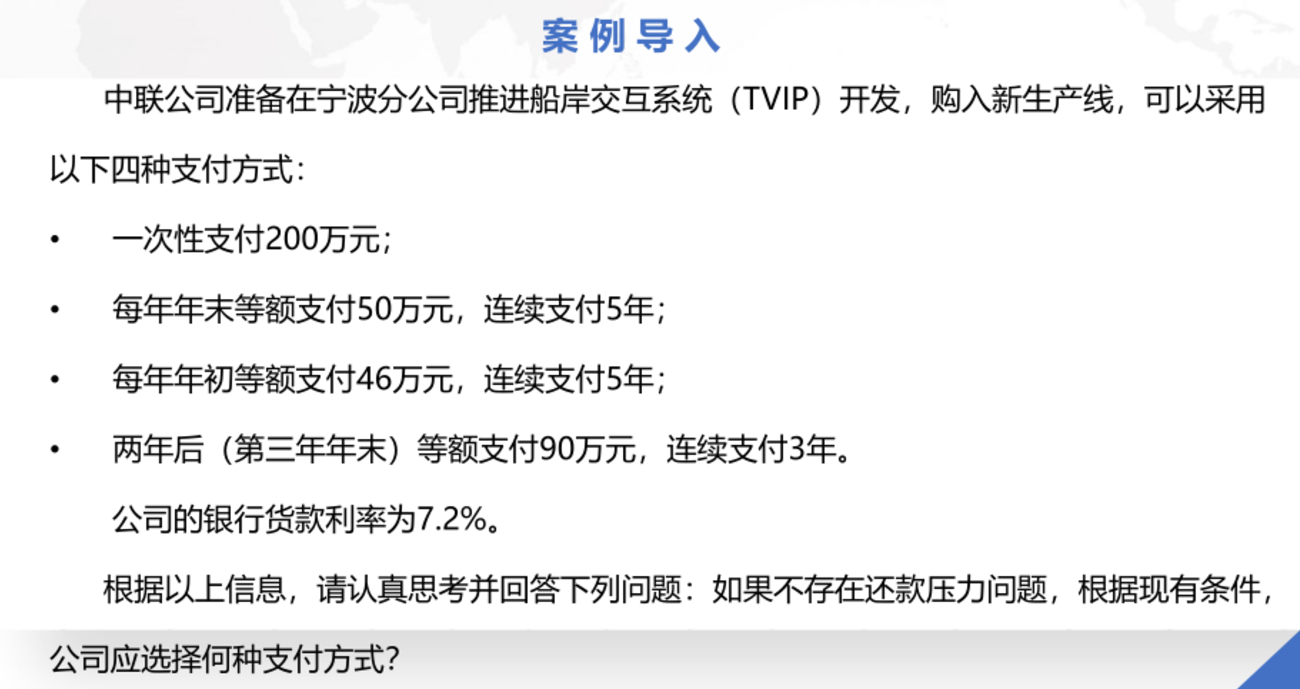 (1)完成中联理货公司 四种支付方式的价值 计算,选择对企业最 有利的支付方式;