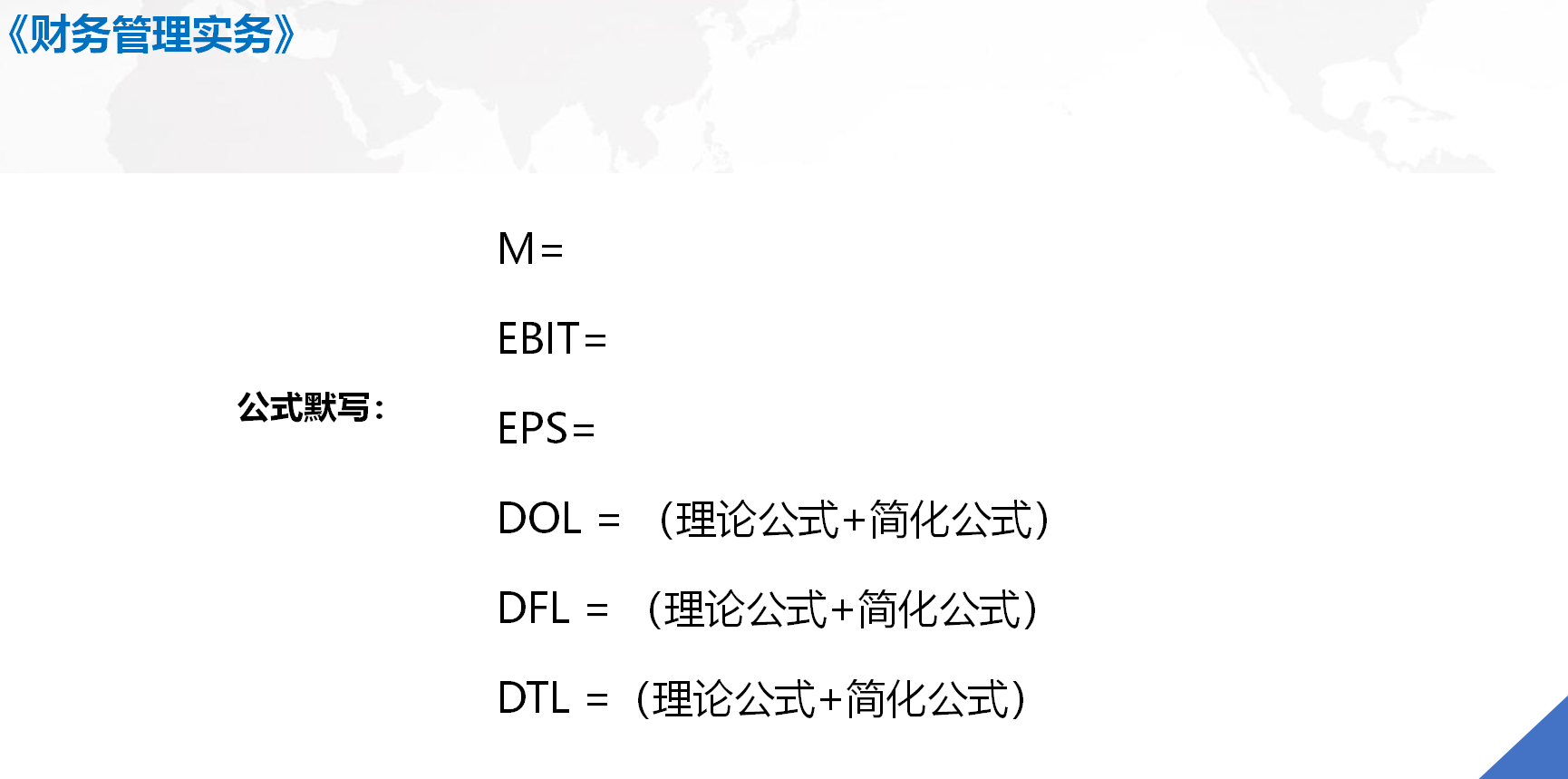从 2008 年美国的次贷危机,到我国 2016 年就开始提出的供给侧改革,“去杠杆”降低 风险。大到宏观面,理解支持国家政策;小到微观面,合理管理自己的财务。这是我们 财务人员必须要做到的。