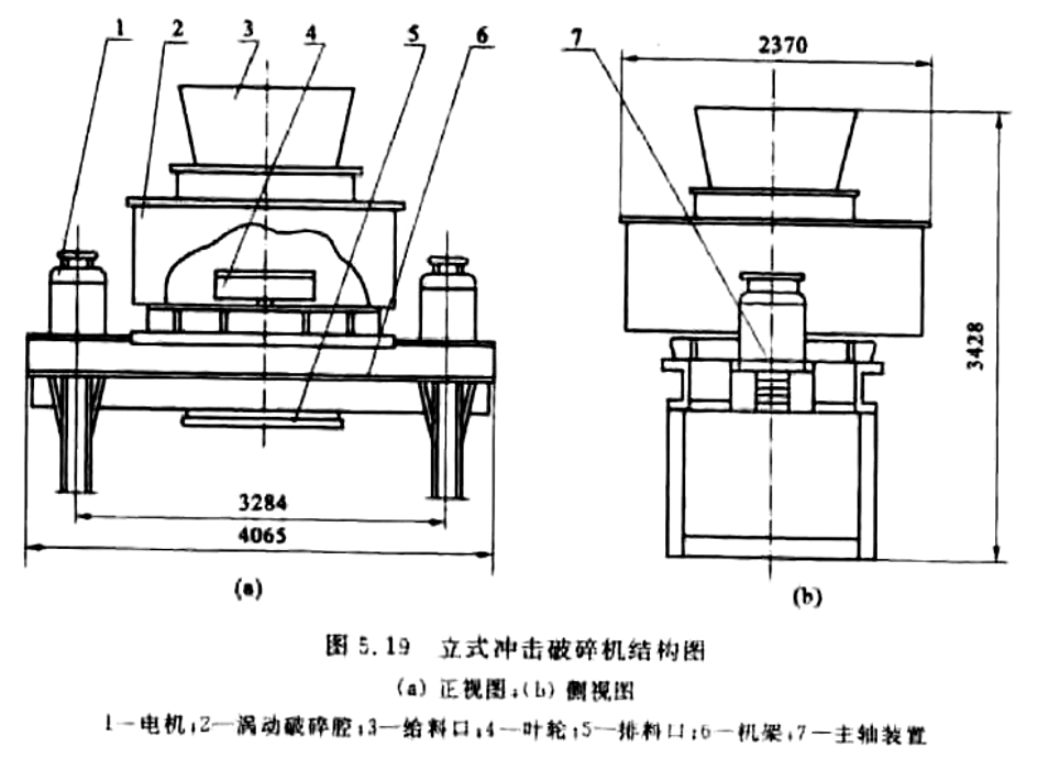在20世纪50年代,立式冲击破碎机已有专利申请,但是由于转子叶轮和机体外环的衬板在高速冲击下磨损极为严重,致使破碎机不能正常工作,从而停止了发展。
