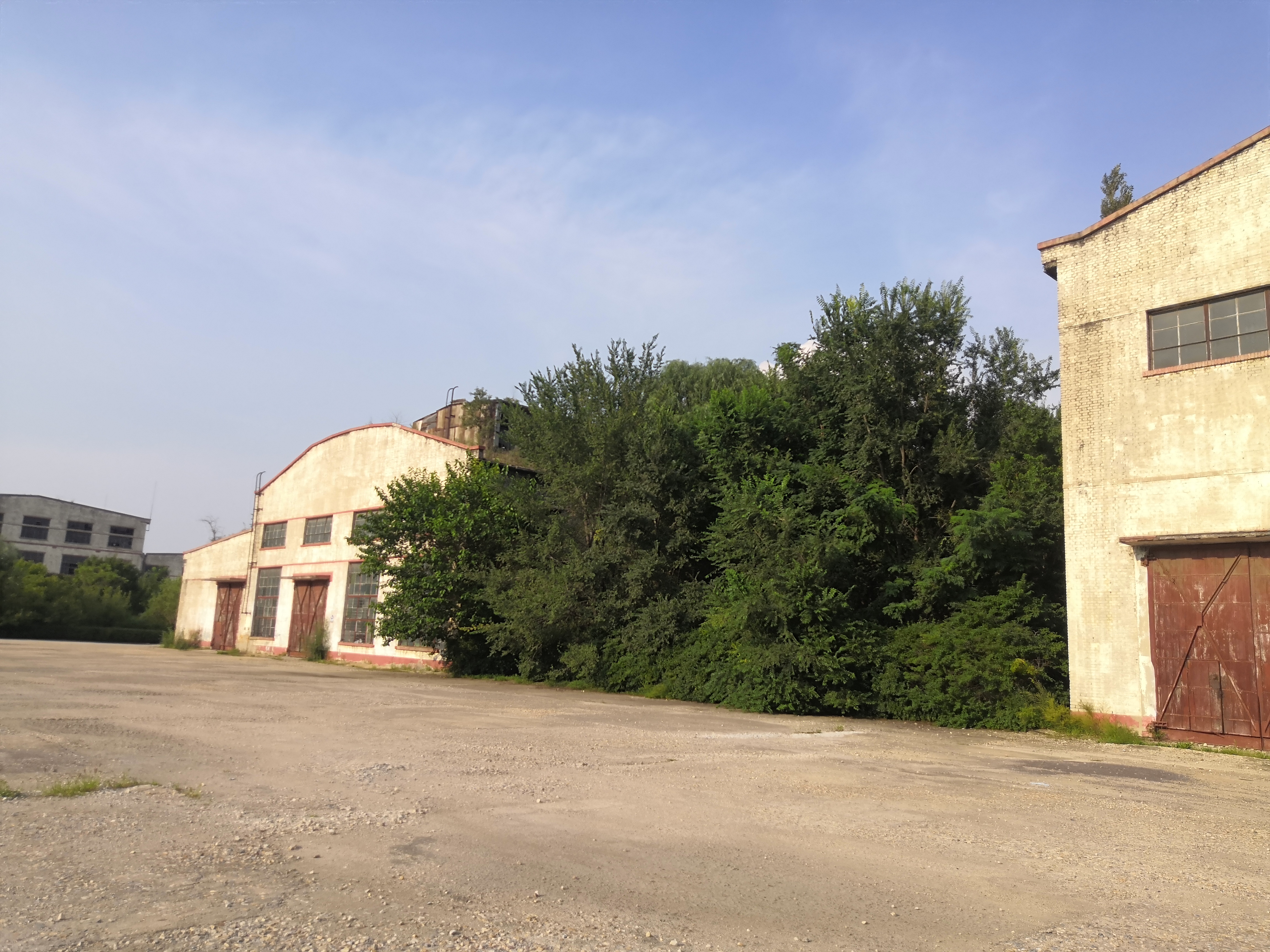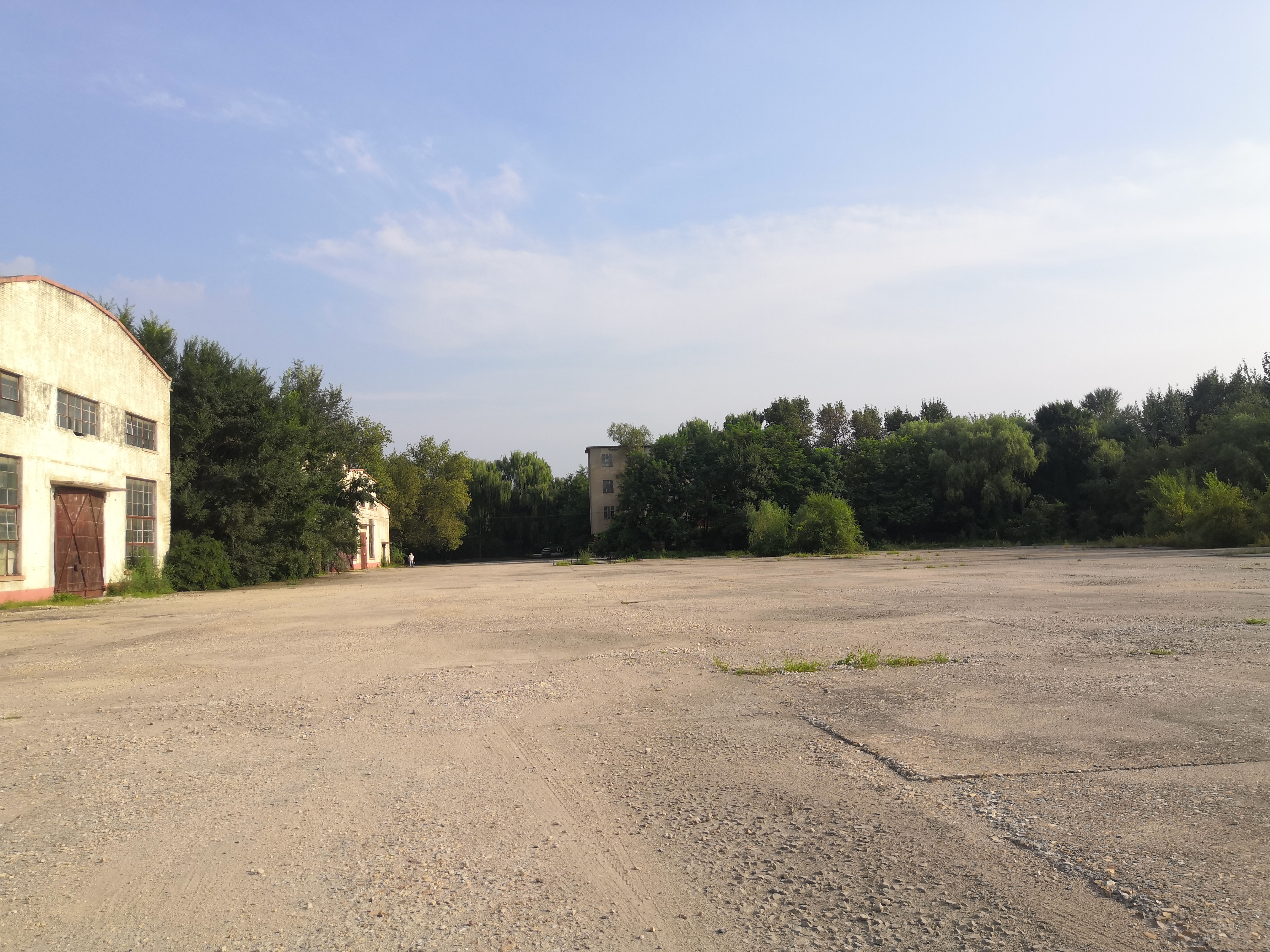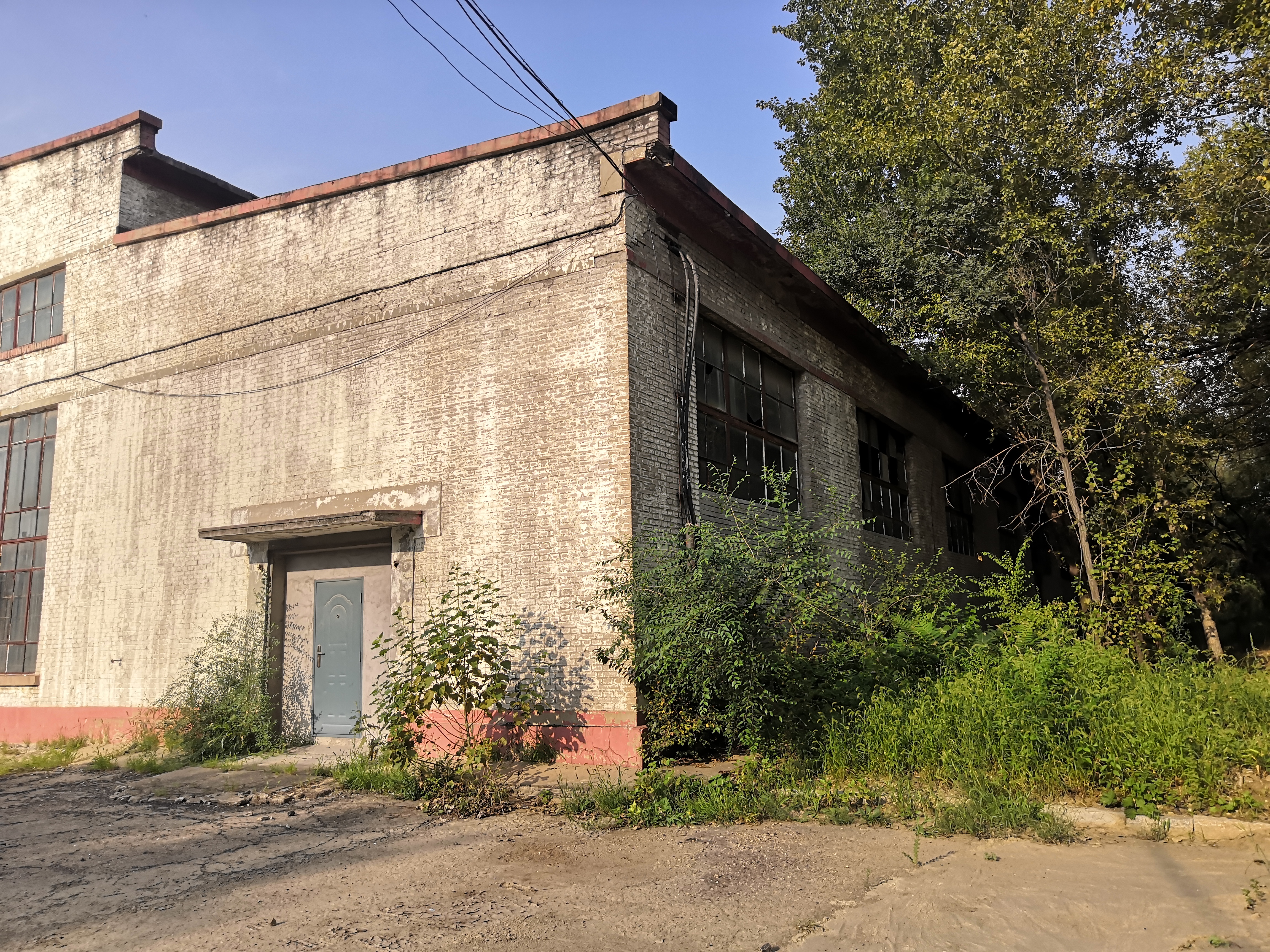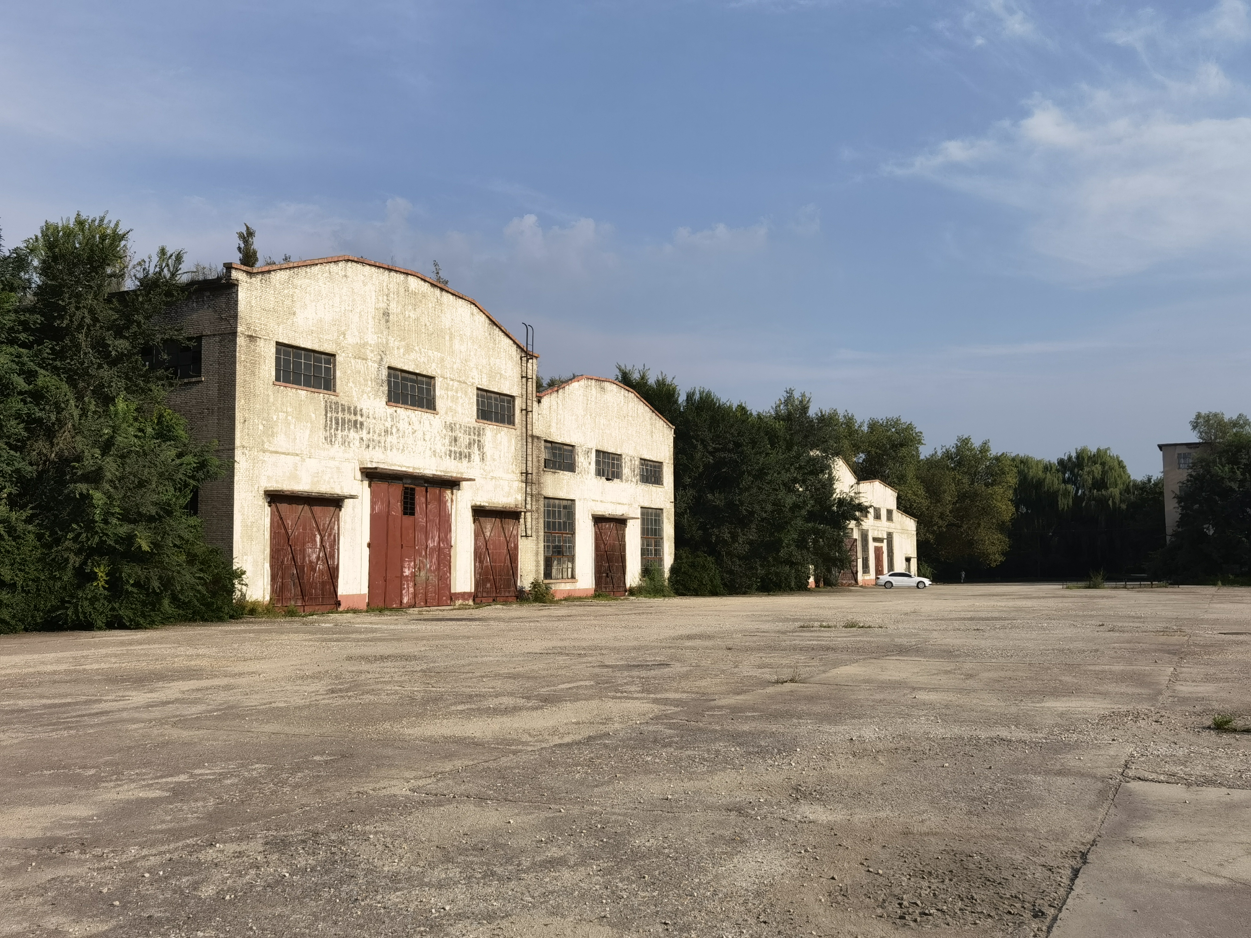 19 闲置汽修厂房西侧广场看其西立面视频
