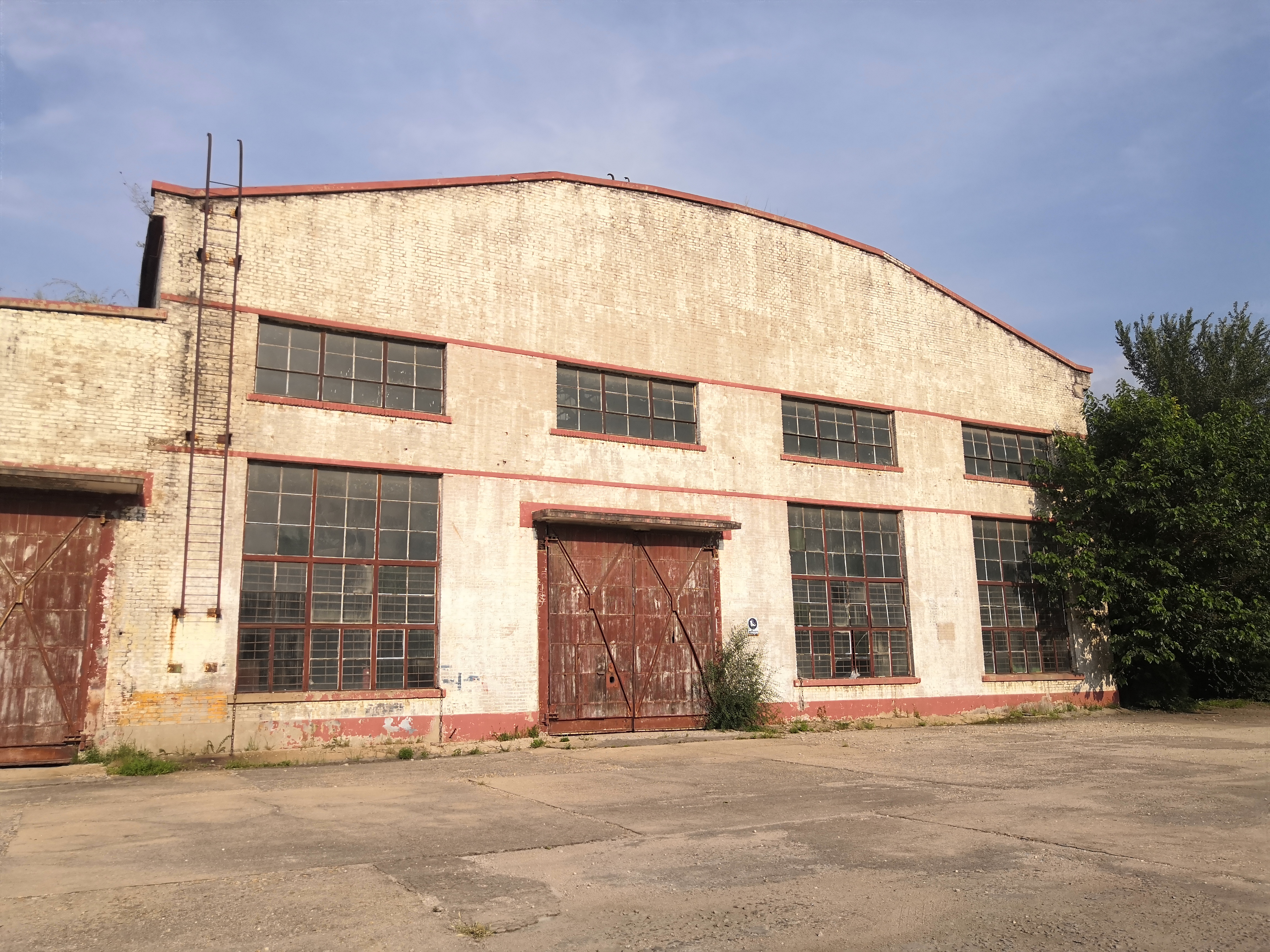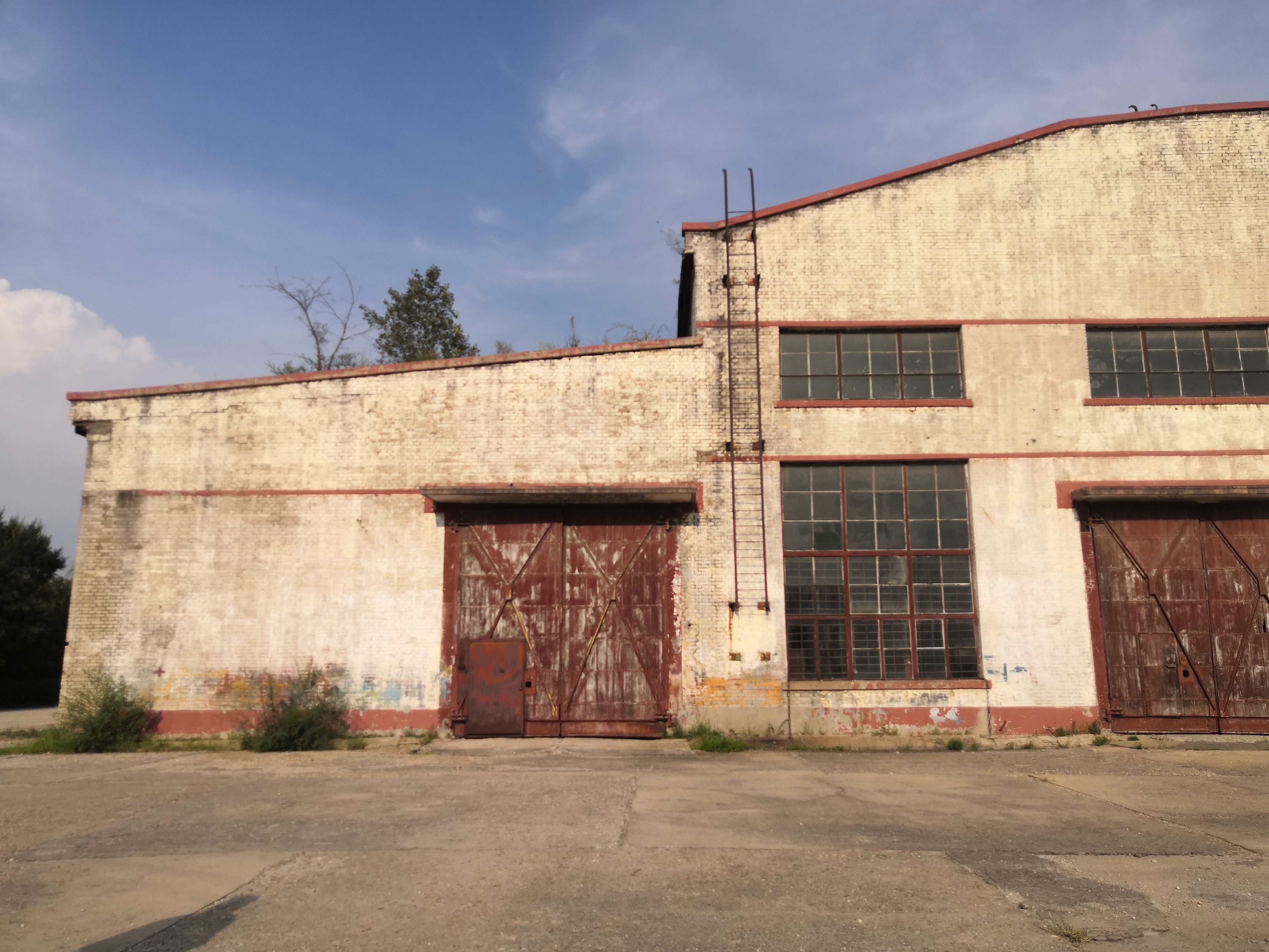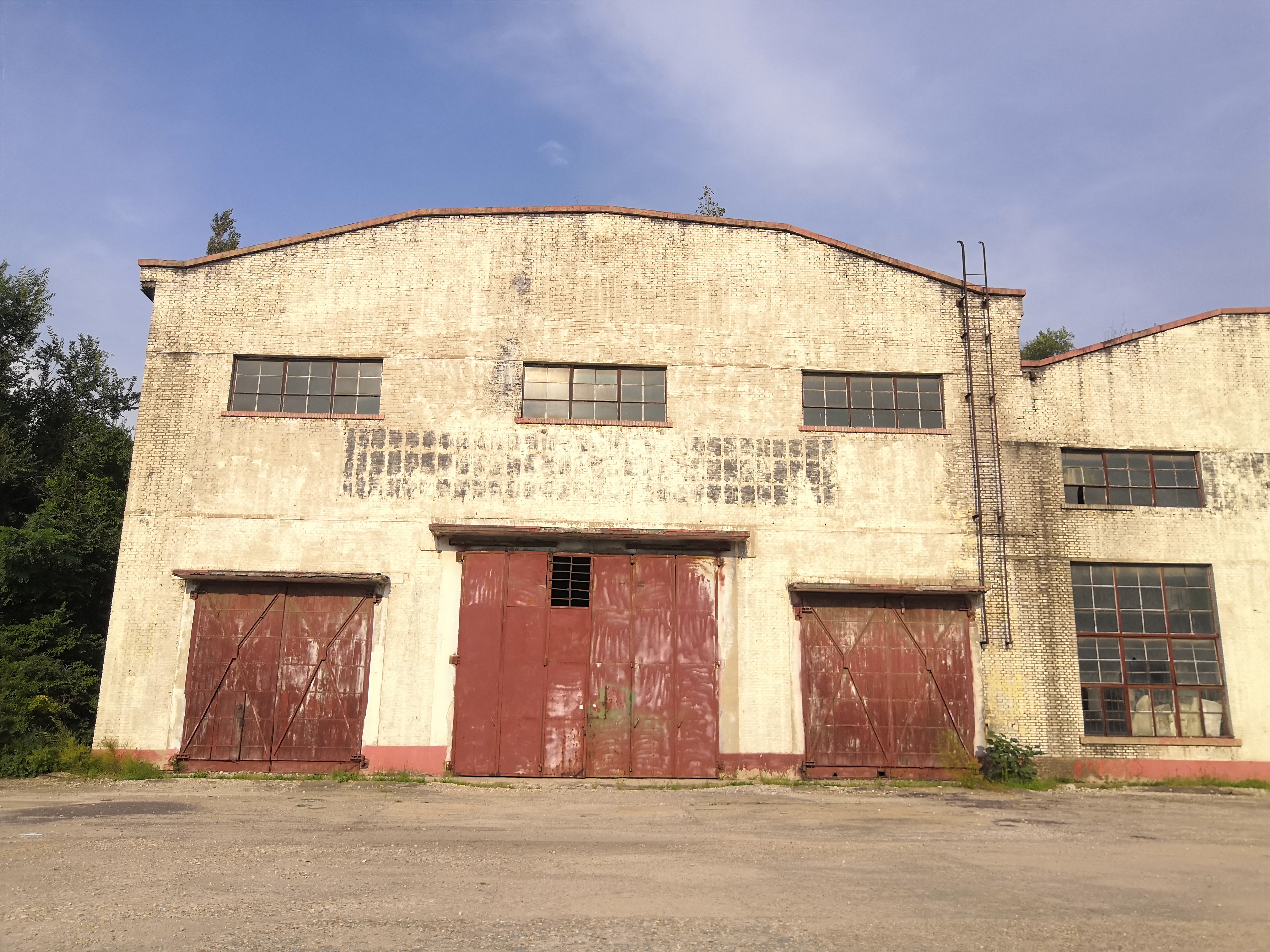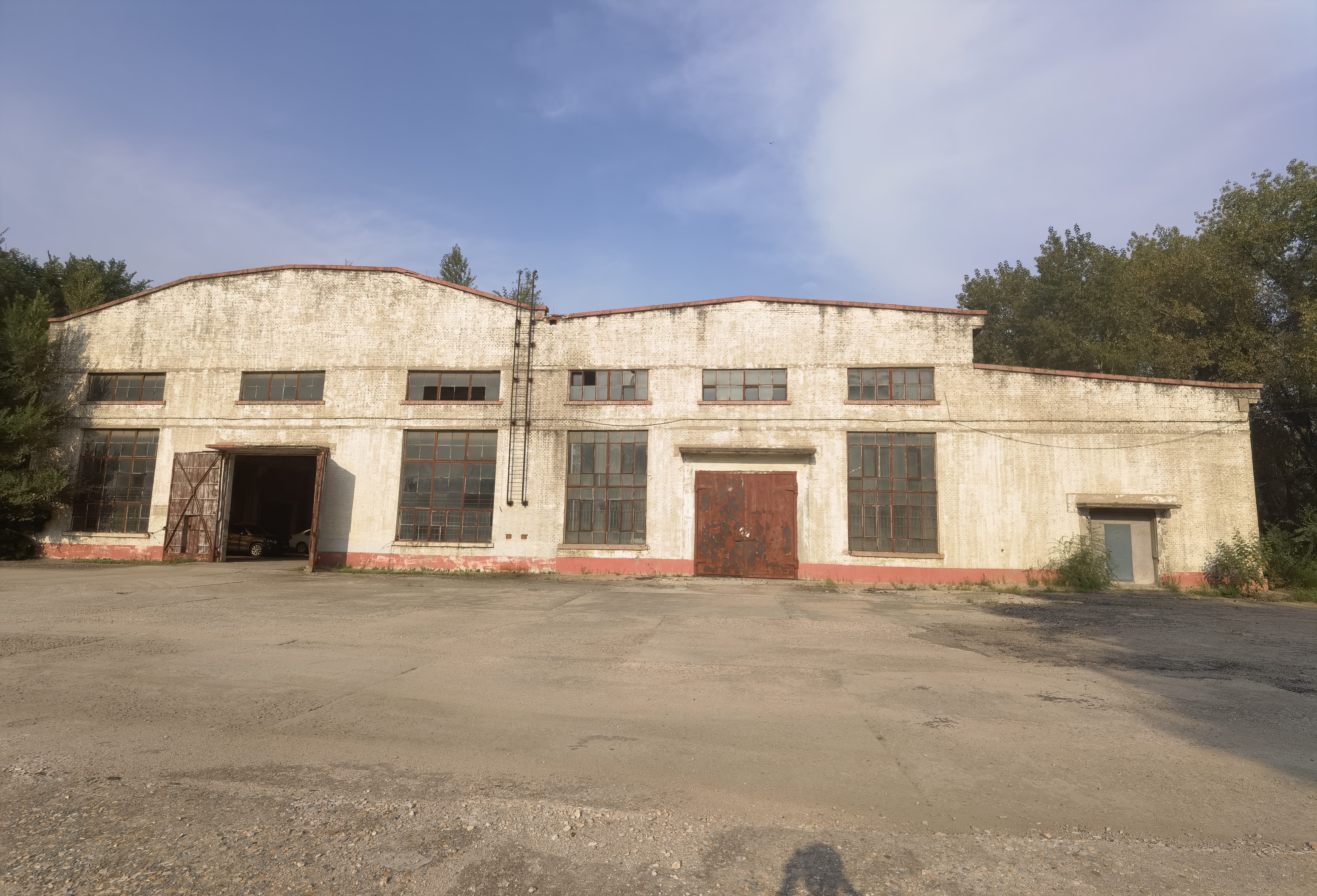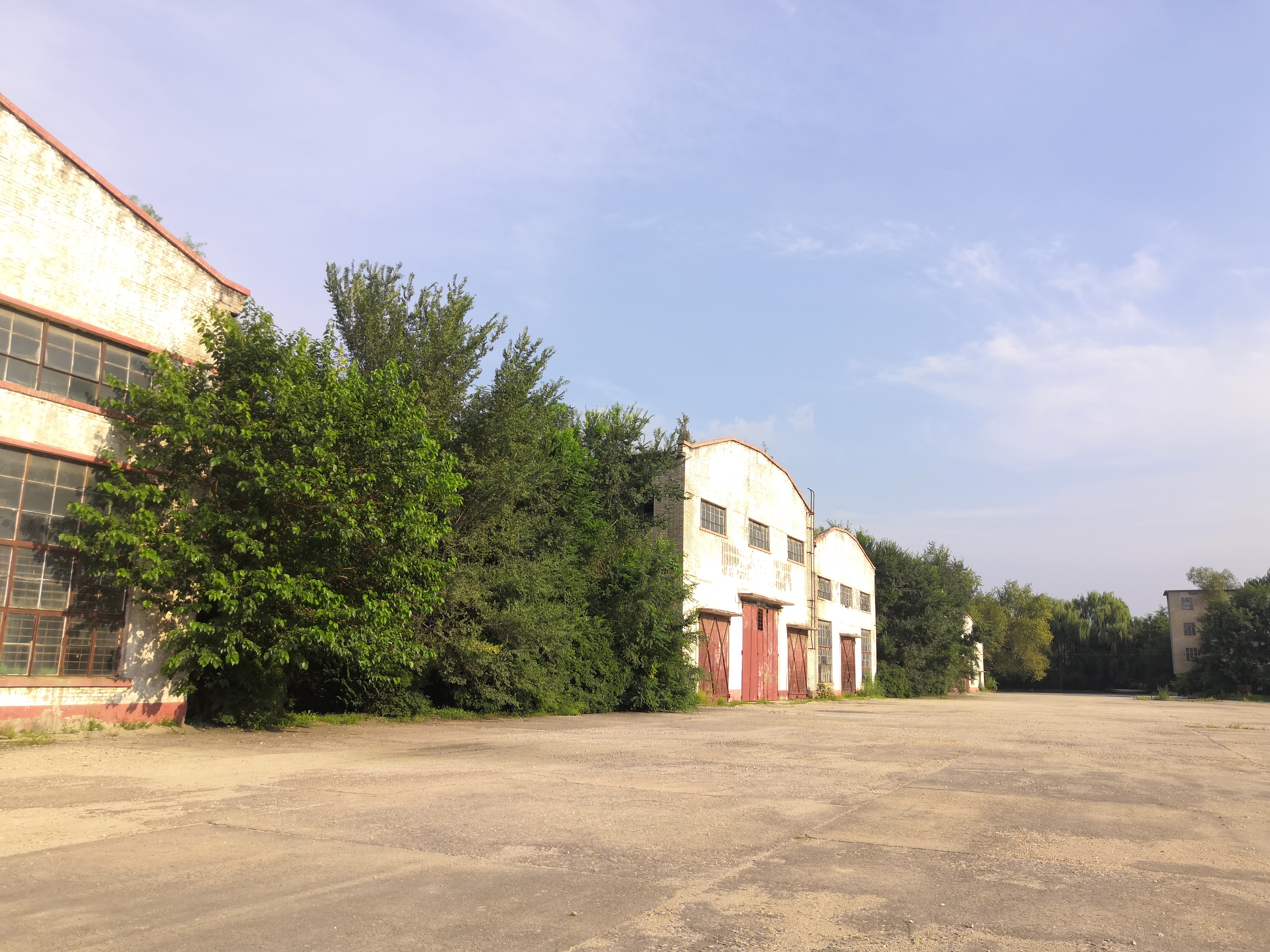 19 闲置汽修厂房西侧广场看其西立面视频