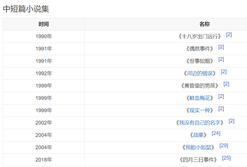 2003年,英文版《许三观卖血记》获美国巴恩斯·诺贝尔新发现图书奖 。2004年,被授予法兰西文学和艺术骑士勋章 。2005年至2006年,先后出版长篇小说《兄弟》的上下部,该书因极端现实主义的写作,曾在中国引起争议 。2008年5月,出版随笔集《没有一条道路是重复的》;10月,凭借小说《兄弟》获得法国国际信使外国小说奖 。2013年,发表长篇小说《第七天》,并凭借该书获得第十二届华语文学传媒大奖年度杰出作家奖。2015年,出版首部杂文集《我们生活在巨大的差距里》 。2018年1月,凭借小说《活着》获得作家出版社超级畅销奖;7月,出版杂文集《我只知道人是什么》。2021年,出版八年来的首部长篇小说《文城》 。