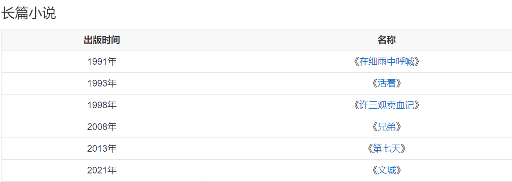 余华代表作品介绍