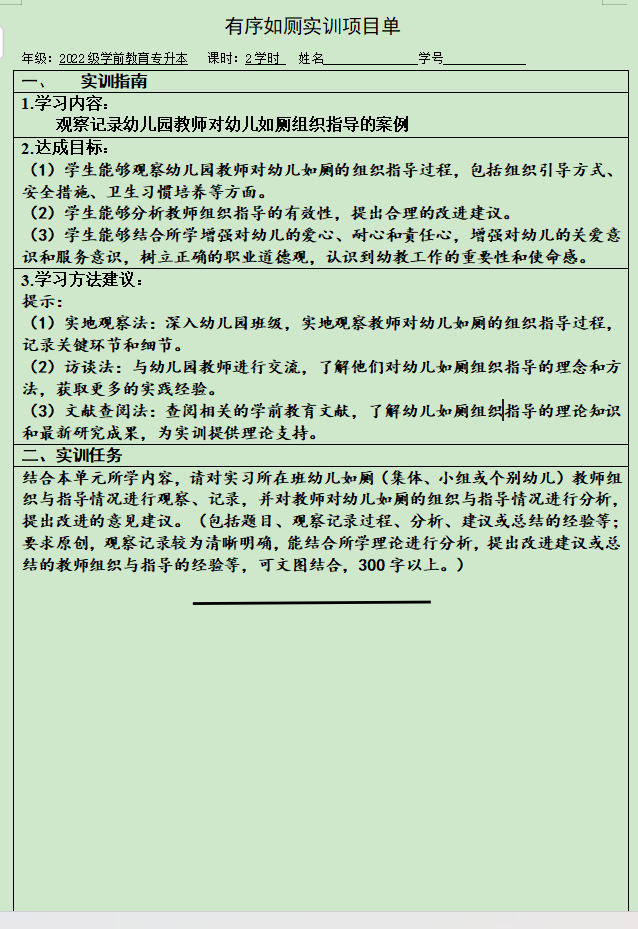 如厕环节项目实训