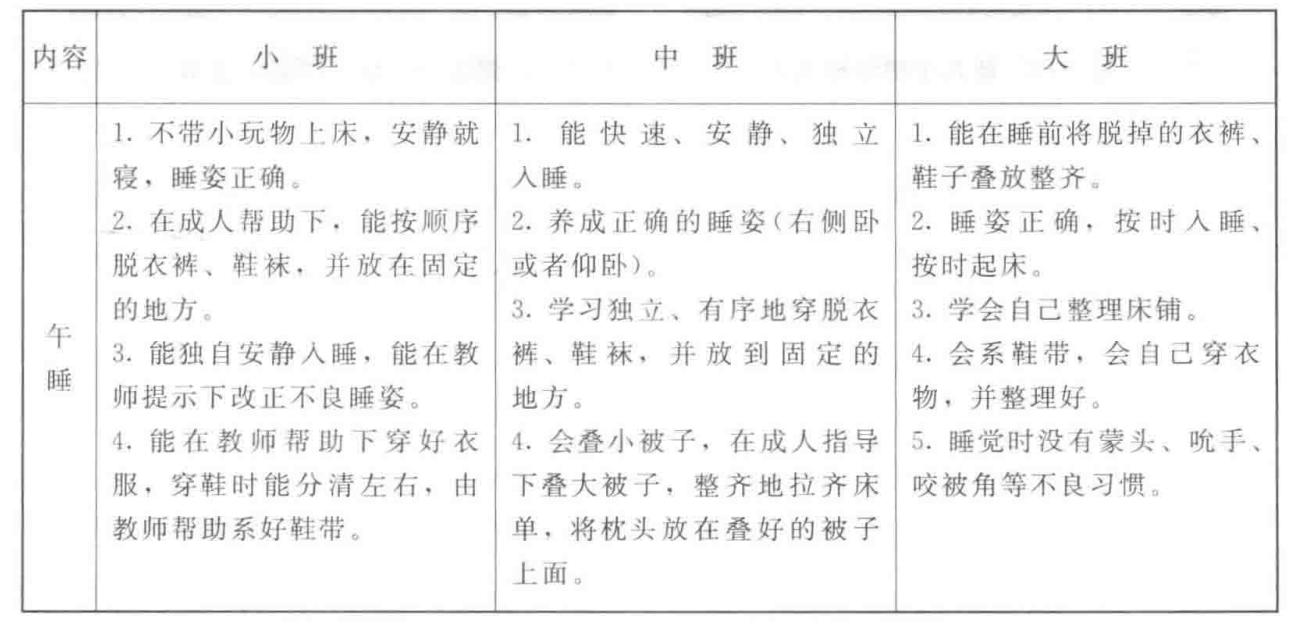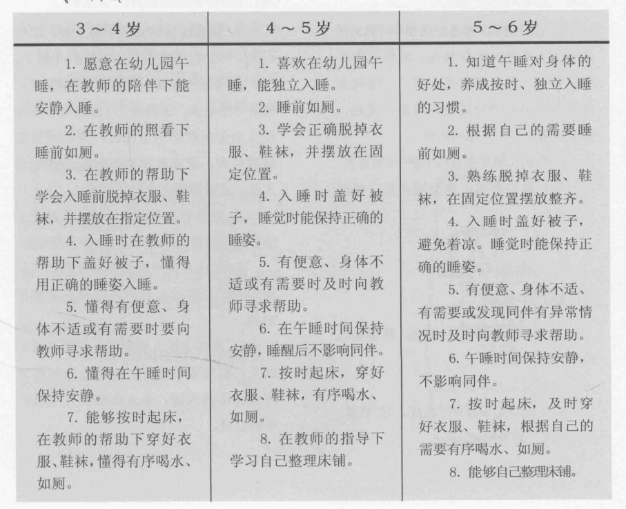 (三)幼儿睡眠环节不同年龄班的培养目标