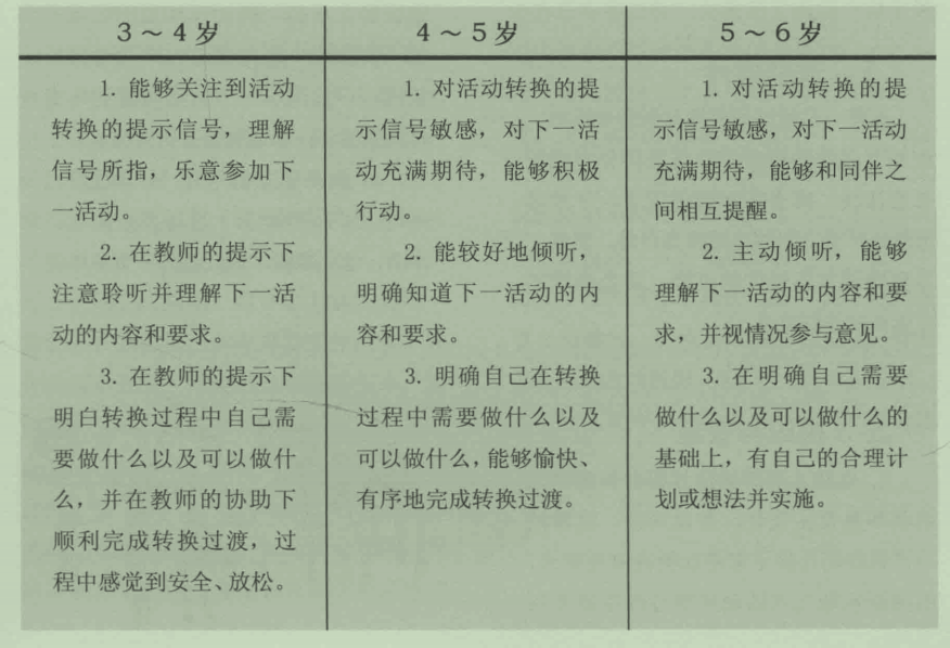 2.对下一活动充满期待,能够愉快、有序的完成过渡环节的生活活动和准备工作。