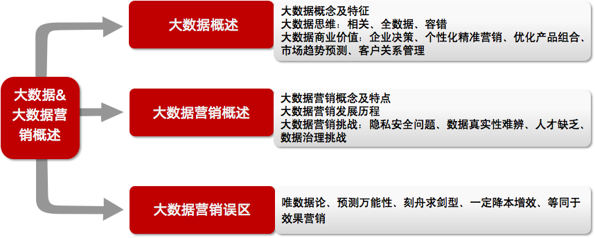 1、了解大数据营销在现实中的应用,能够用思辨思维看待可能存在的问题和误区,培养正确的数据观点。