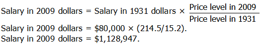2) Example: Babe Ruth’s 1931 salary in 2009 dollars: