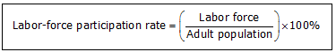 Definition of labor-force participation rate: the percentage of the adult population that is in the labor force.