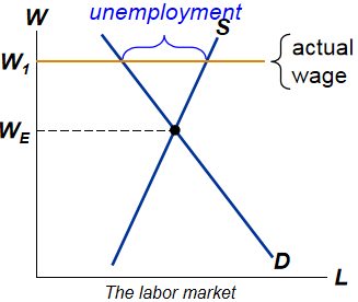 Anytime a wage is set above the equilibrium level for any reason, the quantity of labor supplied is greater than the quantity of labor demanded, thus resulting in the surplus of labor force, known as structural unemployment.
