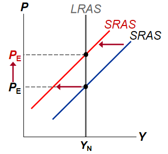 So when the expected price level rises, wages are getting higher, costs increase, and firms produce less, causing the SRAS curve shift to the left.