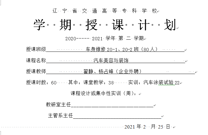具体教学安排遵照学校授课计划进行: