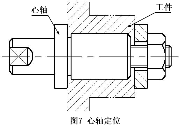 1)以内孔为基准。当零件内孔形状比外圆简单时,可先加工孔至图纸要求,再配置心轴,以内孔为定位加工外圆。如图7所示。