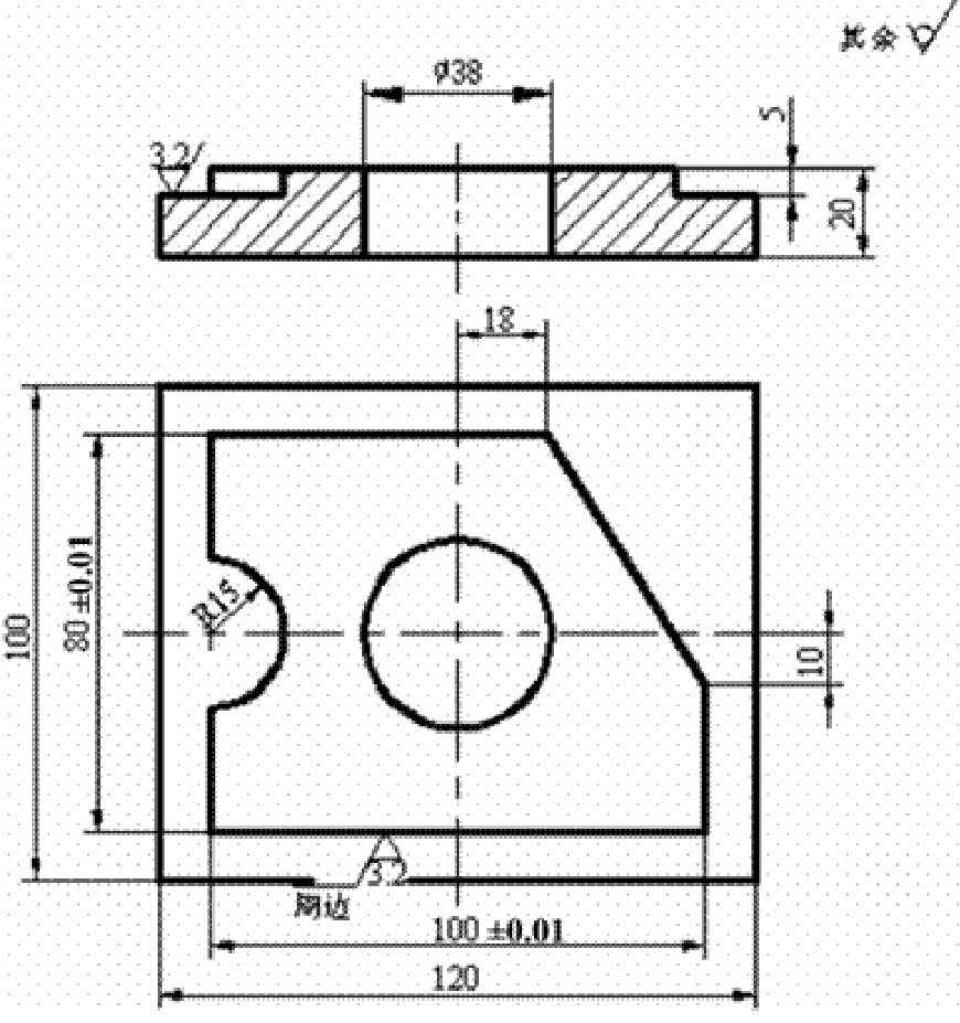 2019年9月,学院承接了某公司一批凸模板零件样板件的外协加工订单,生产类型为单件。其外轮廓和Φ38mm孔已经由前道工序加工,本工序的任务就是加工其凸轮廓。