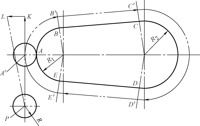 铣削平面零件外轮廓,一般采用立铣刀侧刃进行切削。刀具切入零件时,应沿切削起始点延伸线或切线方向逐渐切入零件,以免在零件的轮廓上切入处产生刻痕,以保证零件表面平滑过渡。刀具离开零件时,也应沿切削终点延伸线或切线方向逐渐切离零件。如图9所示。