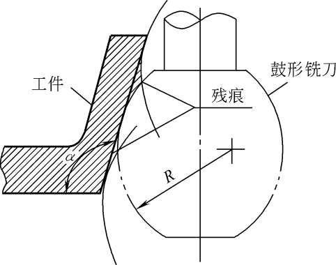 3)采用3坐标数控铣床2坐标联动,利用球头铣刀或鼓形铣刀(图4所示),以直线或圆弧插补方式进行分层铣削加工。加工后的残留面积用钳修方法清除。
