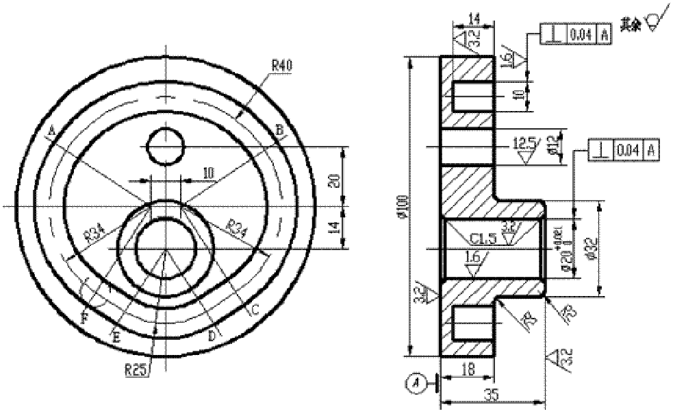2019年9月,学院承接了某公司一批槽形凸轮零件样板件的外协加工订单,生产类型为单件。其外轮廓已经由前道工序加工,本工序的任务就是加工凸轮槽与Φ12mm和Φ20mm的两个孔。