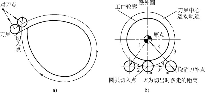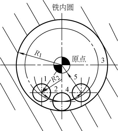 铣削封闭的内轮廓表面时,因内轮廓曲线不允许外延,此时刀具可以沿一过渡圆弧切入和切出零件轮廓,可提高内轮廓表面的加工精度和质量。如图10所示。