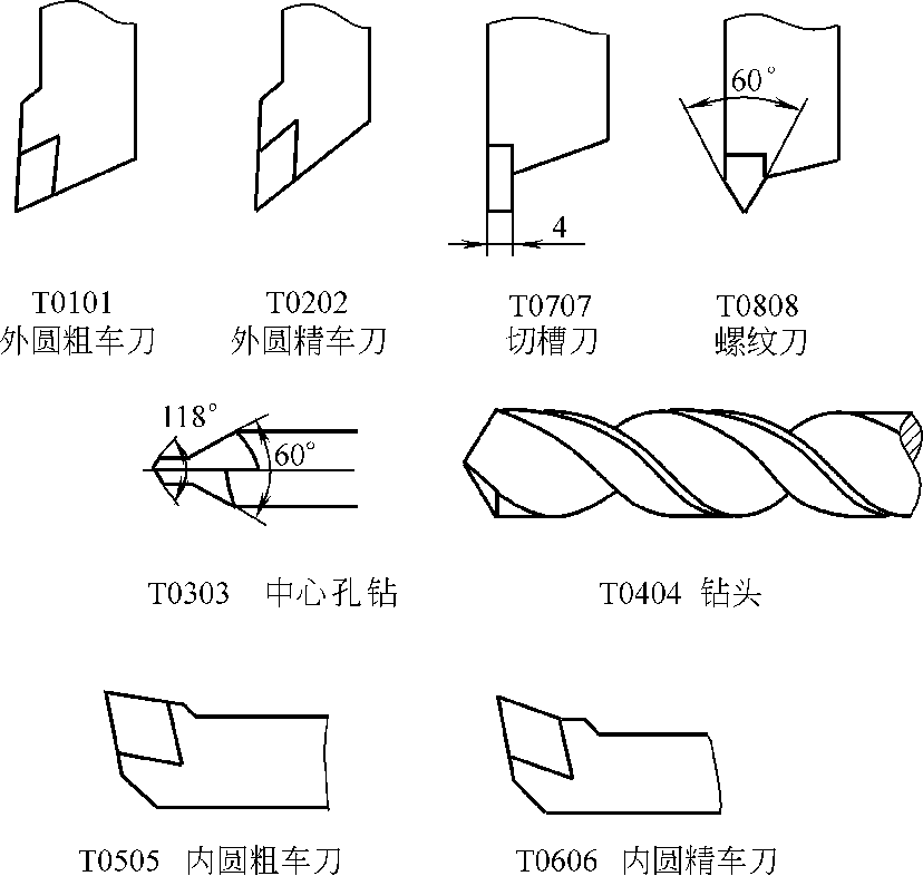 根据零件图分析,加工表面所需要刀具如图1所示。