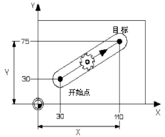 2、例2:如图1所示,用G90和G91指令分别完成从原点-开始点-目标点的加工位置移动程序。