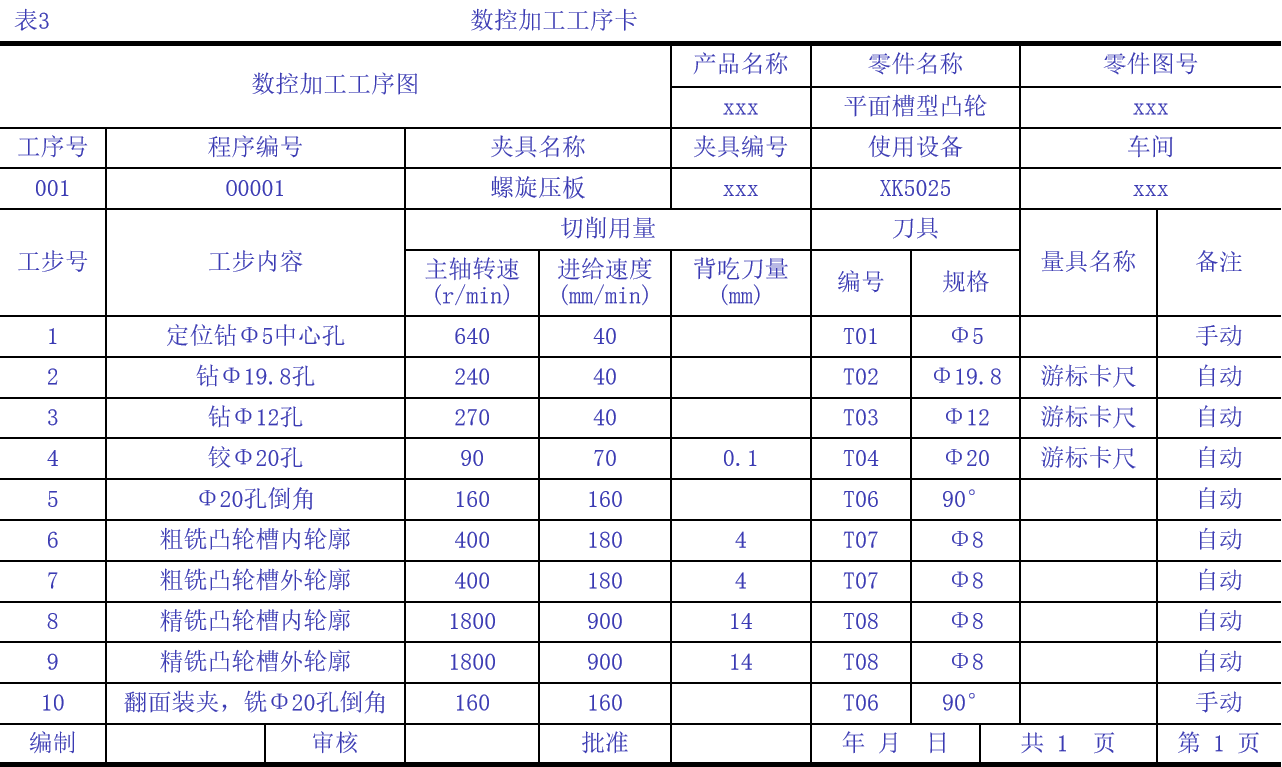 2019年9月,学院承接了某公司一批槽形凸轮零件样板件的外协加工订单,生产类型为单件。其外轮廓已经由前道工序加工,本工序的任务就是加工凸轮槽与Φ12mm和Φ20mm的两个孔。