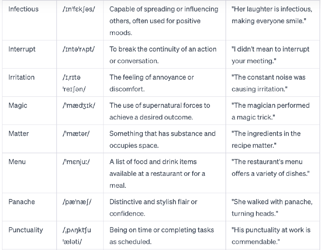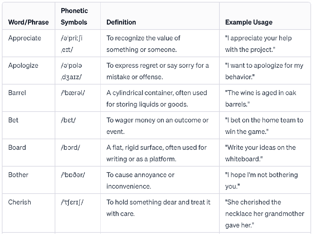 单词表: