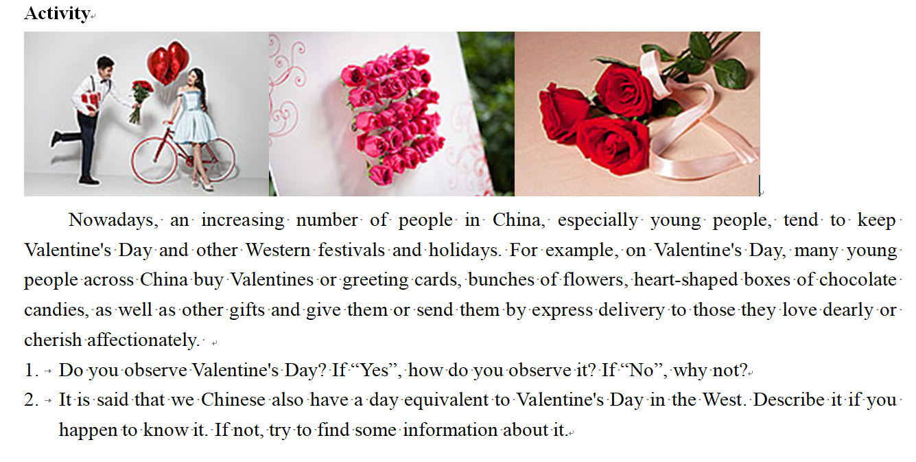 2). The author’s recounting of her Valentine Day memories in thesecond part of the text follows closely the chronological order. Try to pickout the three sentences in this part that indicate the progression of time.