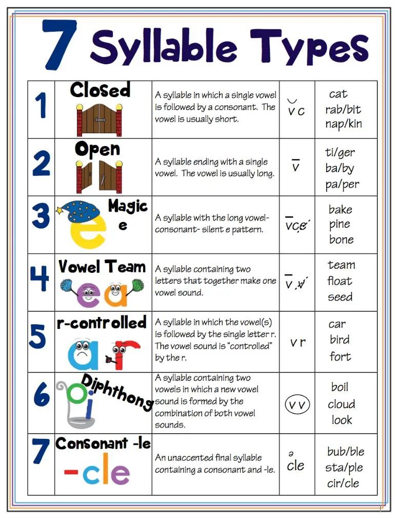 4. 元音组合音节( vowel team syllable ),由两个元音组合成一个整体的音,如 team, boat, seed ,coat。