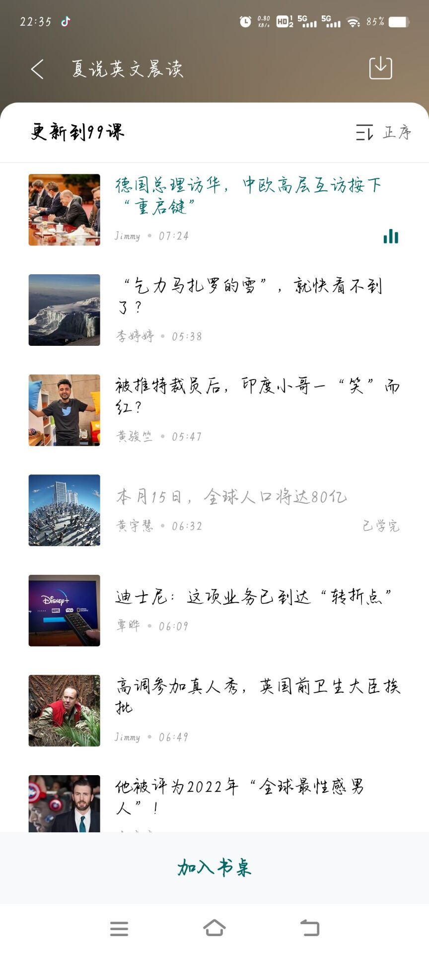 2. 在友邻优课app中夏说英文晨读打卡,提交相同任务的截图,如下图