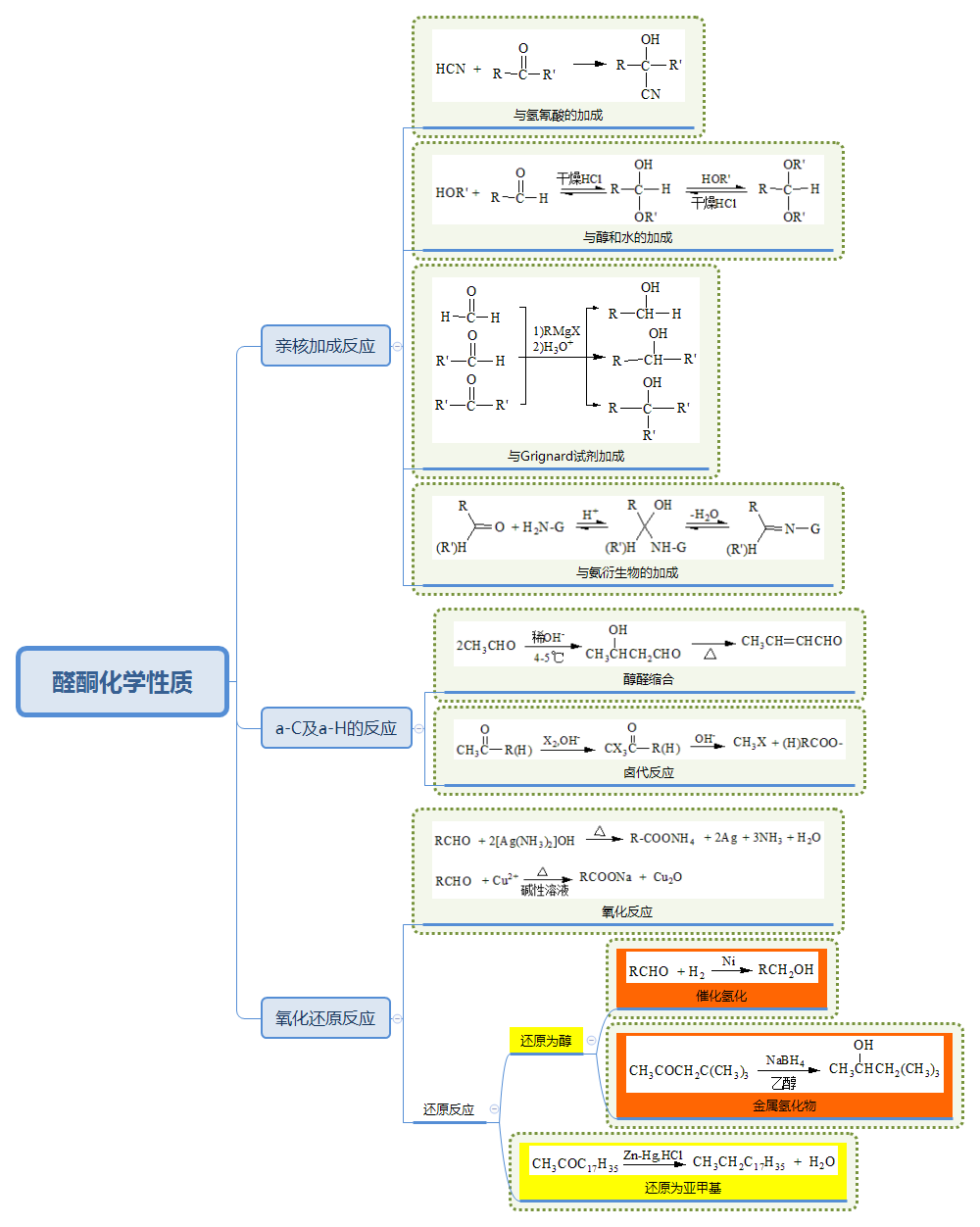 熟悉:1.醛与强氧化剂的反应,醛酮的安息香缩合反应。2.由芳烃侧链控制氧化制醛酮。3.醛酮亲核加成反应的历程。