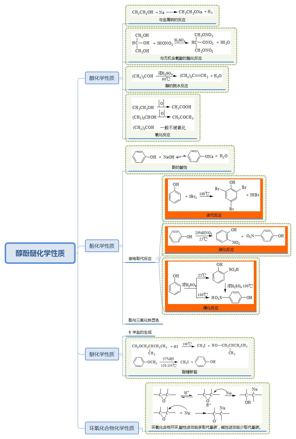 熟悉:1.醇、酚的物理性质及制备(烯烃水合、硼氢化反应,格氏试剂与醛酮加成等)。2.Williamson合成法制备混合醚。