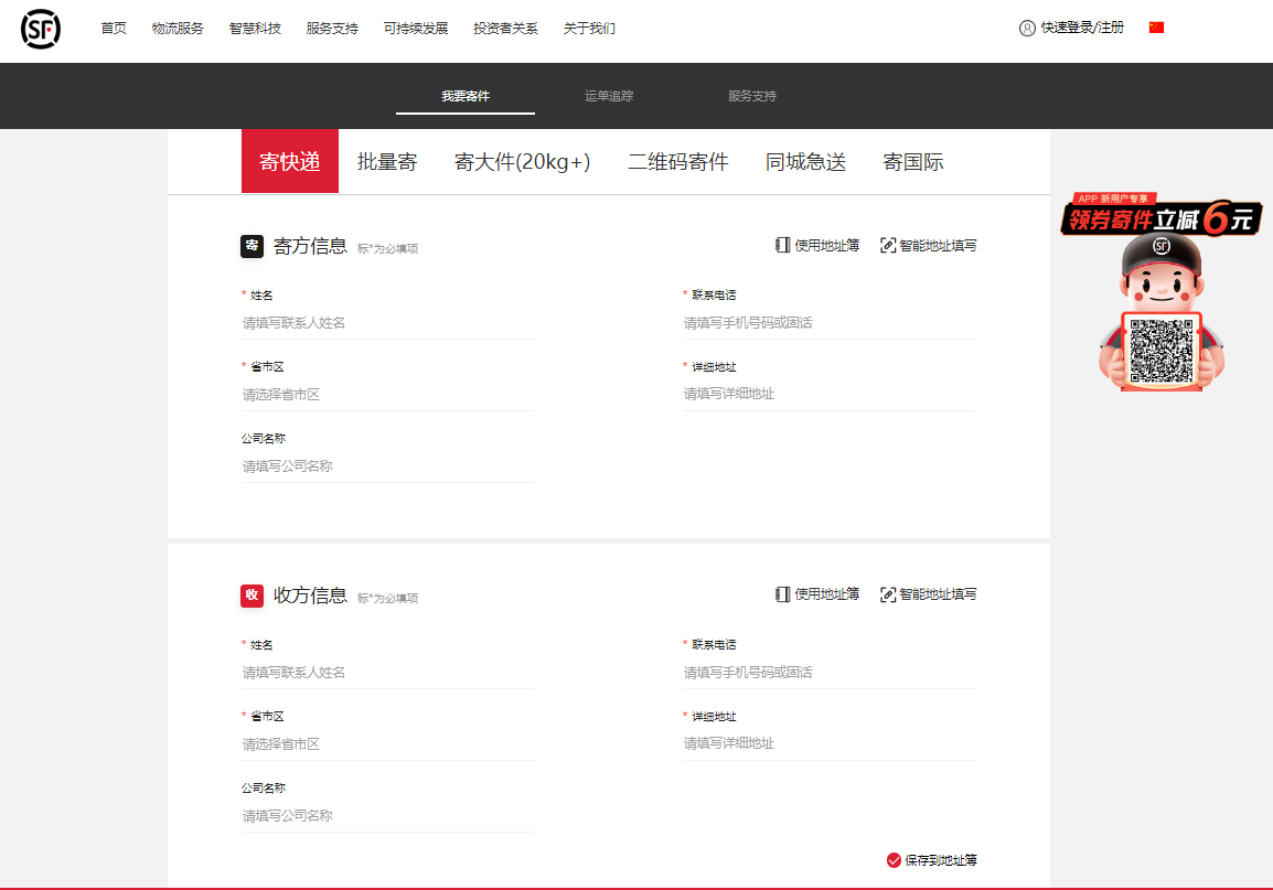 (2)借助网络,登陆顺丰速运网站(https://www.sf-express.com/cn/sc/)
