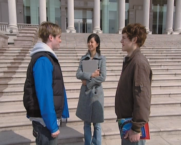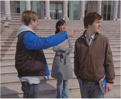 4) Watch the video one last time, with two male students and one female student doing all the voices for the whole conversation.