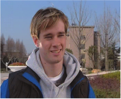 1) At the beginning of the video Michael and Bill are talking happily outside their dorm.