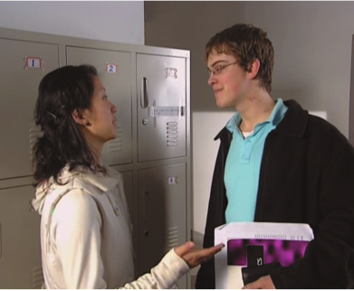 3) Watch the video one last time, with two male students and one female student doing all the voices for the whole conversation.