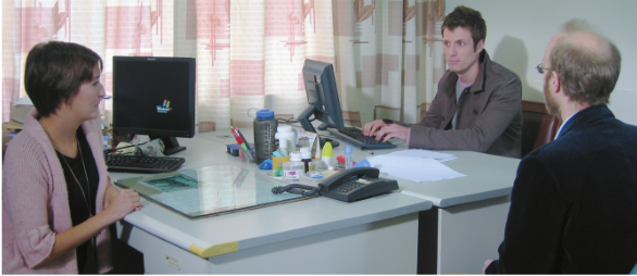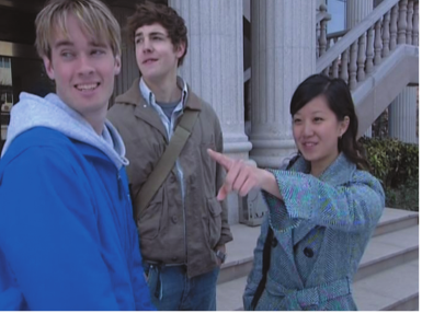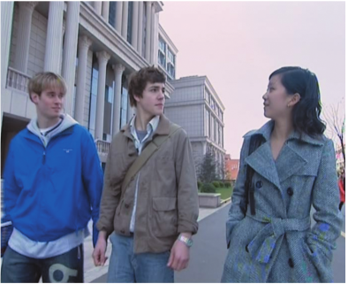 4) Watch the video one last time, with two male students and a female student doing all the voices for the whole conversation.