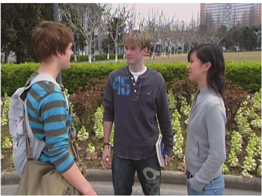 4) Watch the video one last time, with two male students and a female student doing all of the voices for the whole conversation.