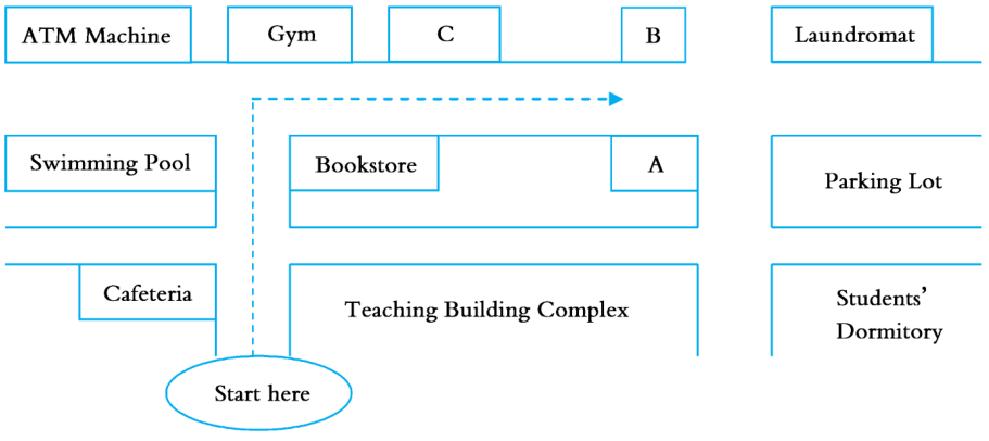 Michael: Sure. Go straight ahead until you get to the end of the street. Turn right, and you will see a red brick building opposite the library. That’s the International Students Center. You can’t miss it.