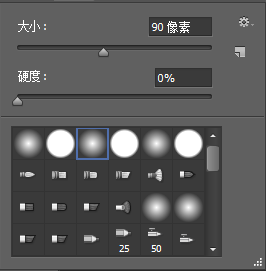 硬度:定义画笔边界的柔和程度。变化范围为0%-100%,值越小,画笔越柔和。