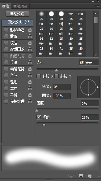 画笔笔尖形状:对画笔大小和间距选项进行设置。